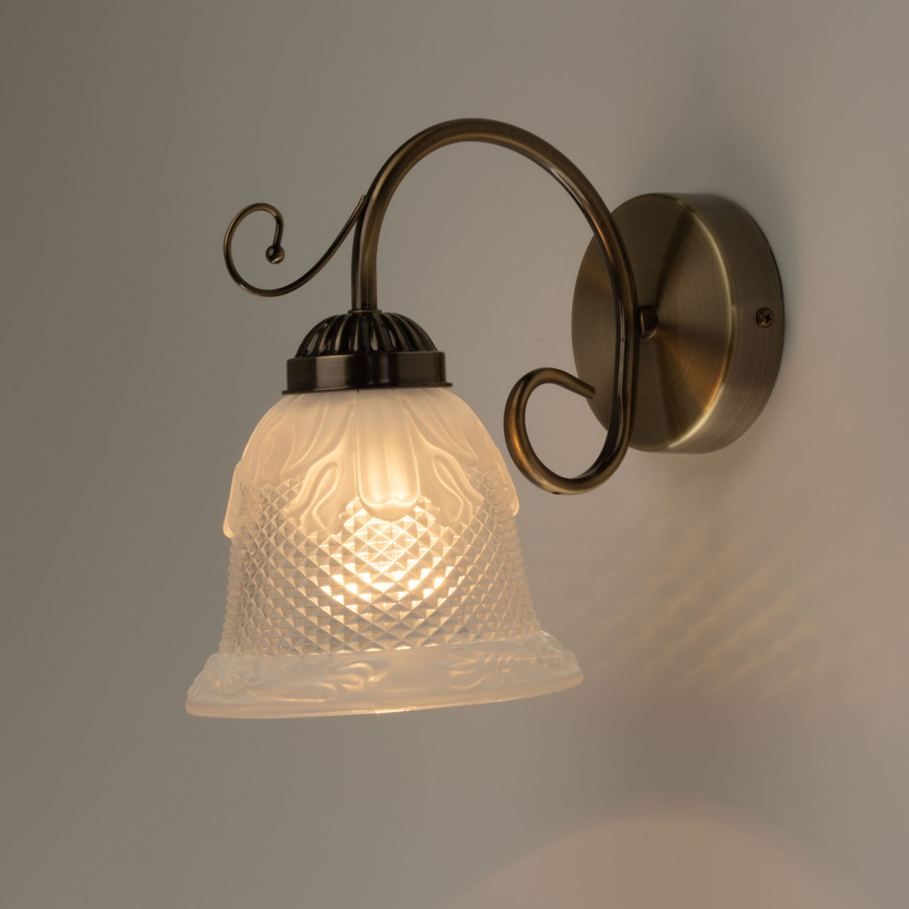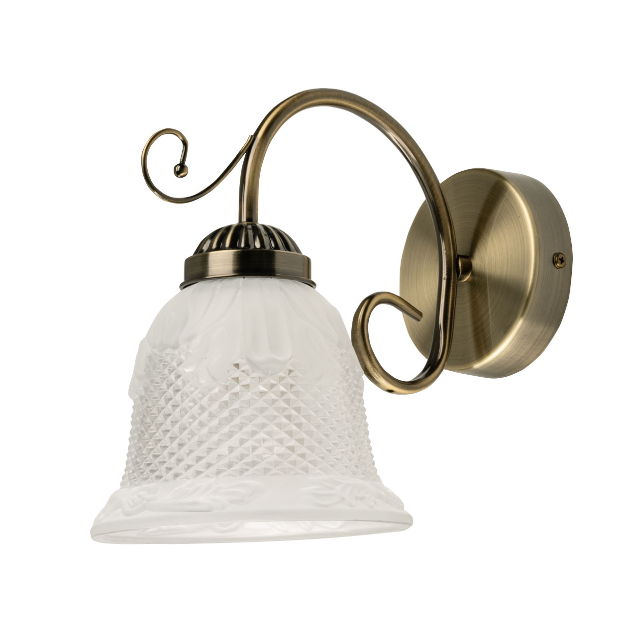 Настенное бра, выполненное в классическом стиле, представляет собой изысканный элемент освещения, который прекрасно дополнит любой интерьер. Его основание изготовлено из металла, который был гальванизирован в элегантный цвет античной бронзы. Этот оттенок придаёт бра не только стильный вид, но и позволяет ему легко вписаться в различные дизайнерские решения. Плафон в форме колокольчика, выполненный из стекла, украшен сложным фактурным узором, который создает интересные световые эффекты, добавляя атмосферности в помещение.Такое бра идеально подходит для создания уюта в зоне отдыха, например, рядом с диваном или креслом в гостиной. Оно станет великолепным акцентом, который привлечет внимание и создаст теплую атмосферу для общения с друзьями или семейного времяпрепровождения. Кроме того, это бра можно использовать в качестве прикроватного светильника в спальне, что позволит создать романтическую и спокойную обстановку для отдыха и расслабления.Благодаря своему универсальному дизайну, настенное бра гармонично сочетается с различными стилями интерьера. Оно будет уместно как в классических и неоклассических интерьере, так и в более современных стилях, таких как прованс или модерн. Это делает его идеальным выбором для тех, кто хочет добавить в своё пространство нотку элегантности и стиля. Кроме того, благодаря разнообразию стилей, это бра станет отличным дополнением к вашему интерьеру, независимо от того, предпочитаете ли вы уютный деревенский стиль или строгую современную эстетику.