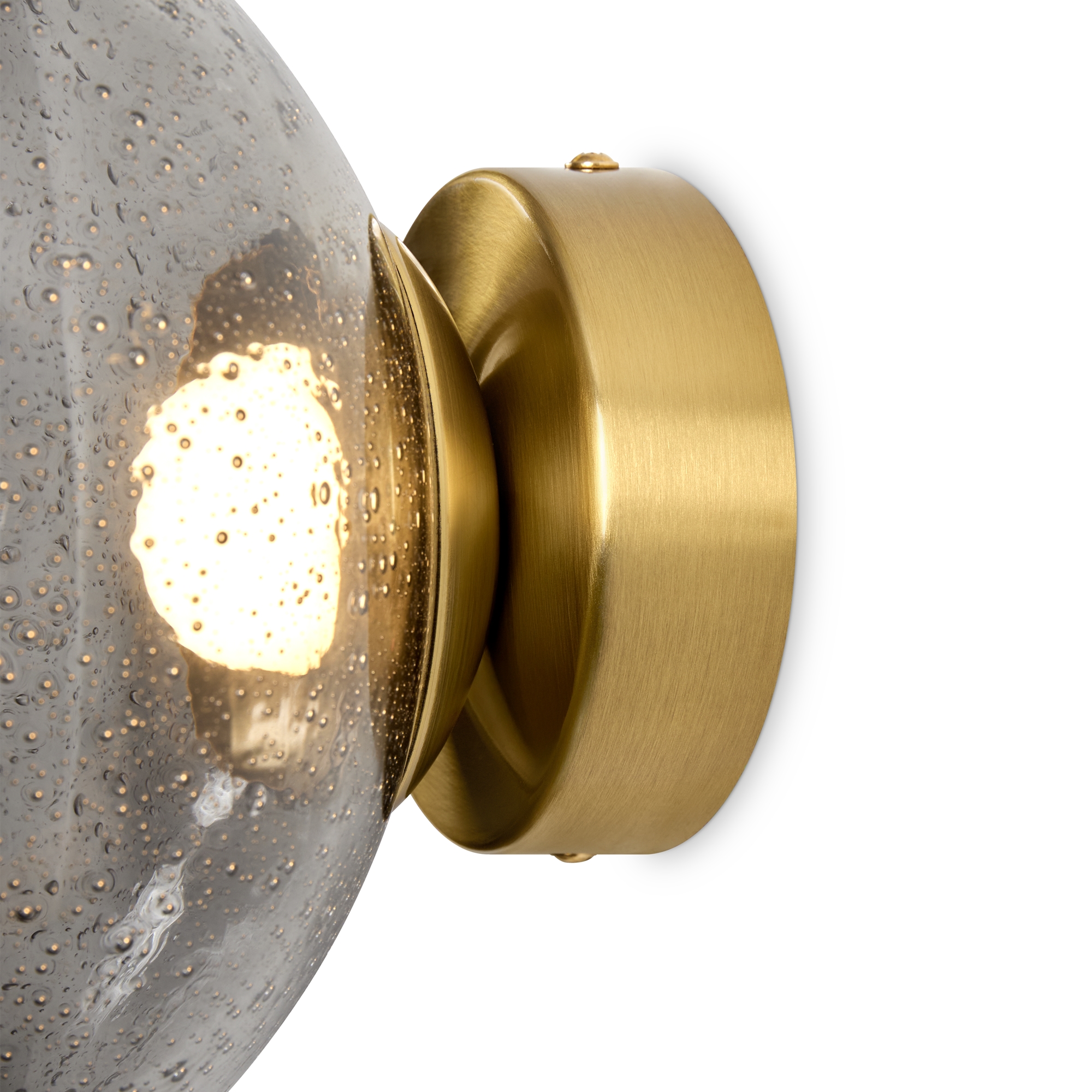 Арматура — металл. Стеклянные плафоны с пузырьками в трёх цветах: дымчатый, прозрачный, янтарный. Интегрированный LED источник света 3000К, Ra 80, угол 180°. Высота регулируется.