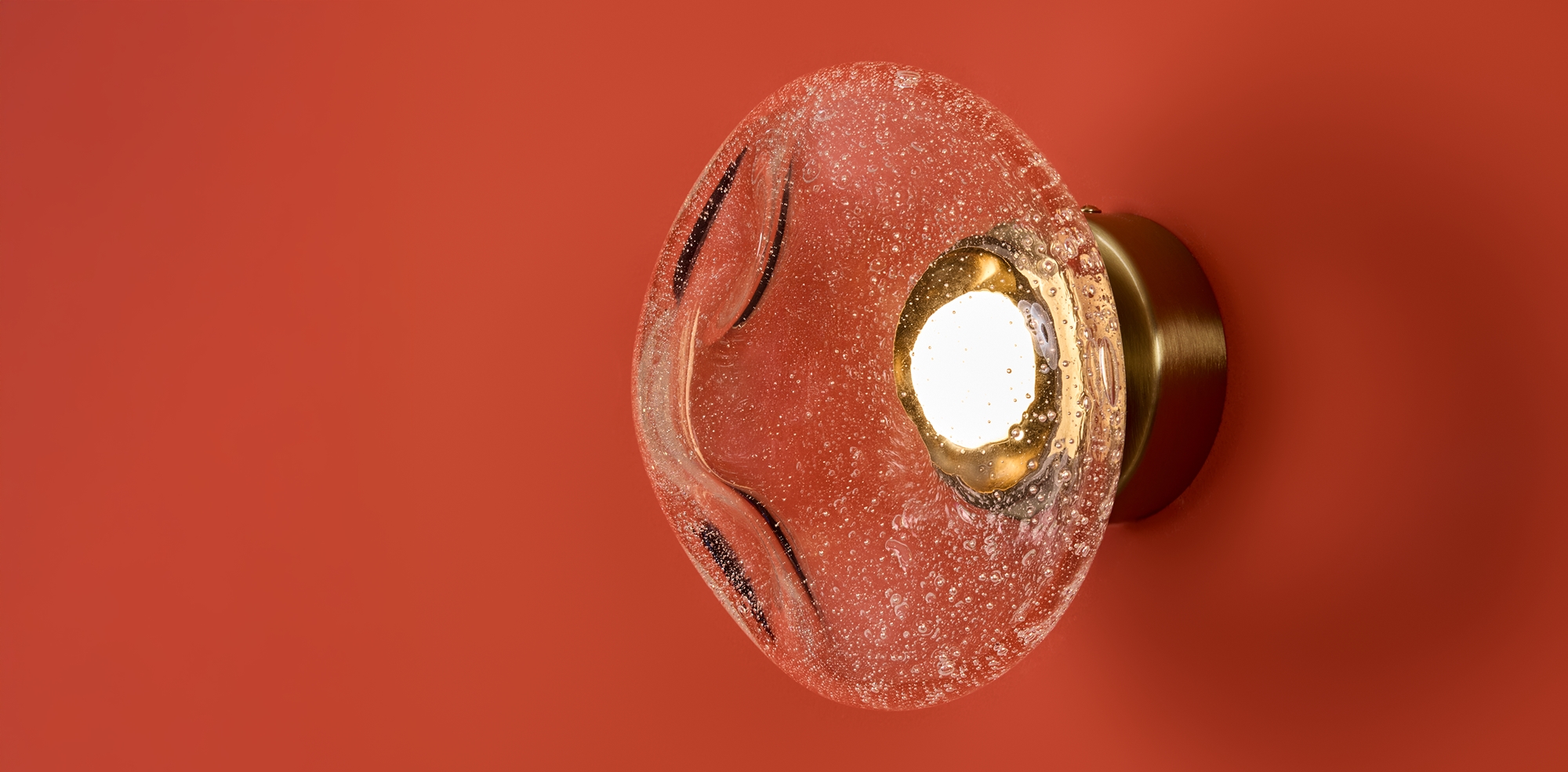 Арматура — металл. Стеклянные плафоны с пузырьками в трёх цветах: дымчатый, прозрачный, янтарный. Интегрированный LED источник света 3000К, Ra 80, угол 180°. Высота регулируется.
