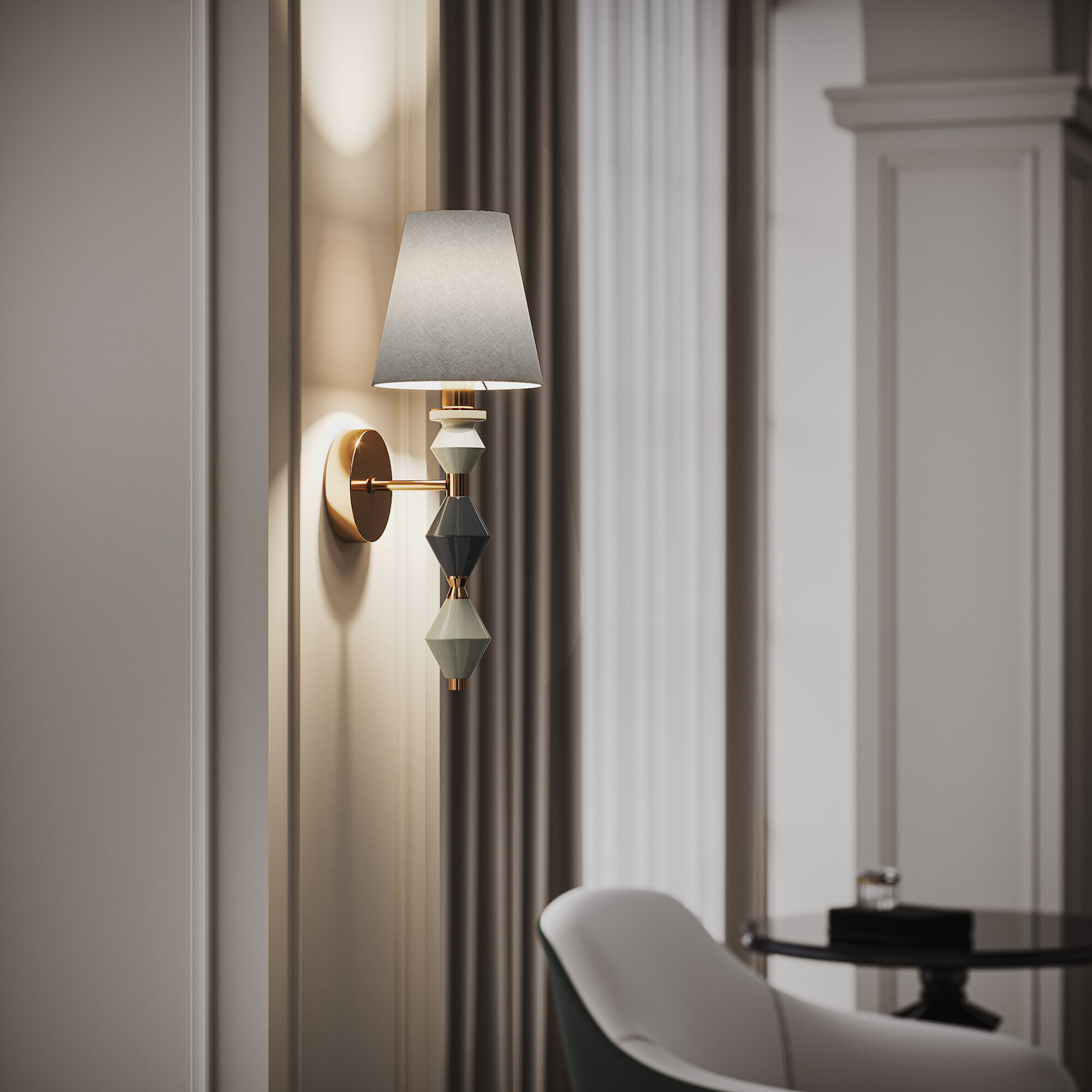 Настенный светильник 103012 идеально подходит для создания акцентного освещения. Декор из керамических элементов придает светильнику современный и запоминающийся вид. Контрастное сочетание цветов – светло-серый, молочный и латунный – создает визуально привлекательный акцент в интерьере. Сочетание классической формы и современного дизайна делает светильник универсальным дополнением к любому интерьеру, от минимализма до ар-деко.