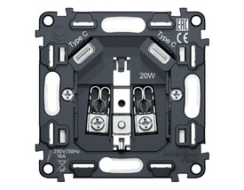 Механизм электрической розетки Type С+C 20W быстрая зарядка с заземлением на винтовых зажимах 16A-250V Ambrella Volt Quant QUANT VM165