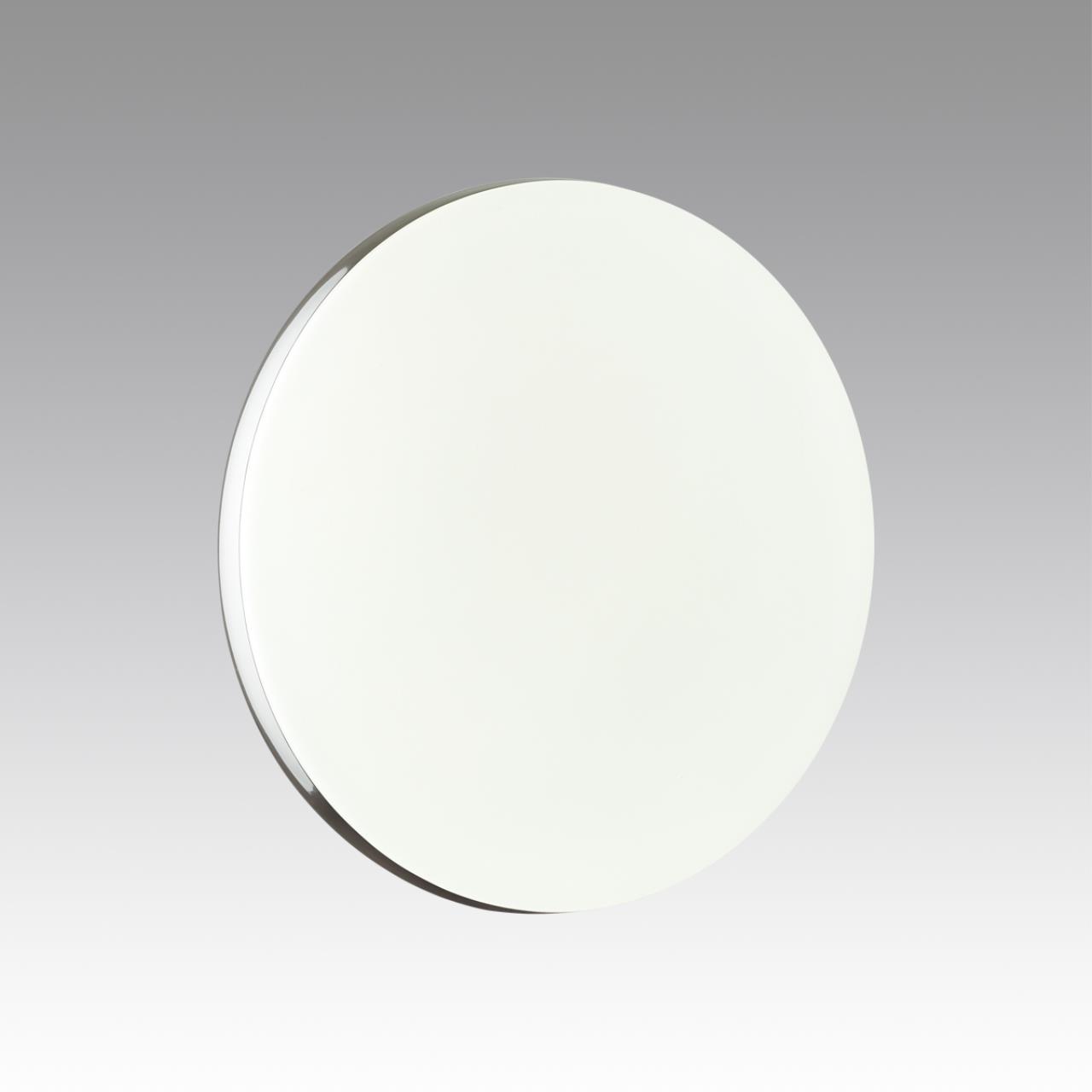 Светильник 7600/CLN линии RINGO состоит из металлического основания (базы) и пластикового рассеивателя. Материал рассеивателя - высококачественный пластик марки PMMA 2.0 белого цвета с матовой поверхностью, без текстуры. Пластик обеспечивает светильнику равномерное рассеивание и хорошее светопропускание. Форма плафона: круглая, декорирована ободом из пластика цвета хром. Степень защиты IP43 позволяет использовать светильник в определенных зонах влажных помещений. В комплект входит LED модуль с линзами, мощностью 36Вт, которая соответствует лампе накаливания 315Вт. Источник света имеет комфортную цветовую температуру 4000К (белый свет).