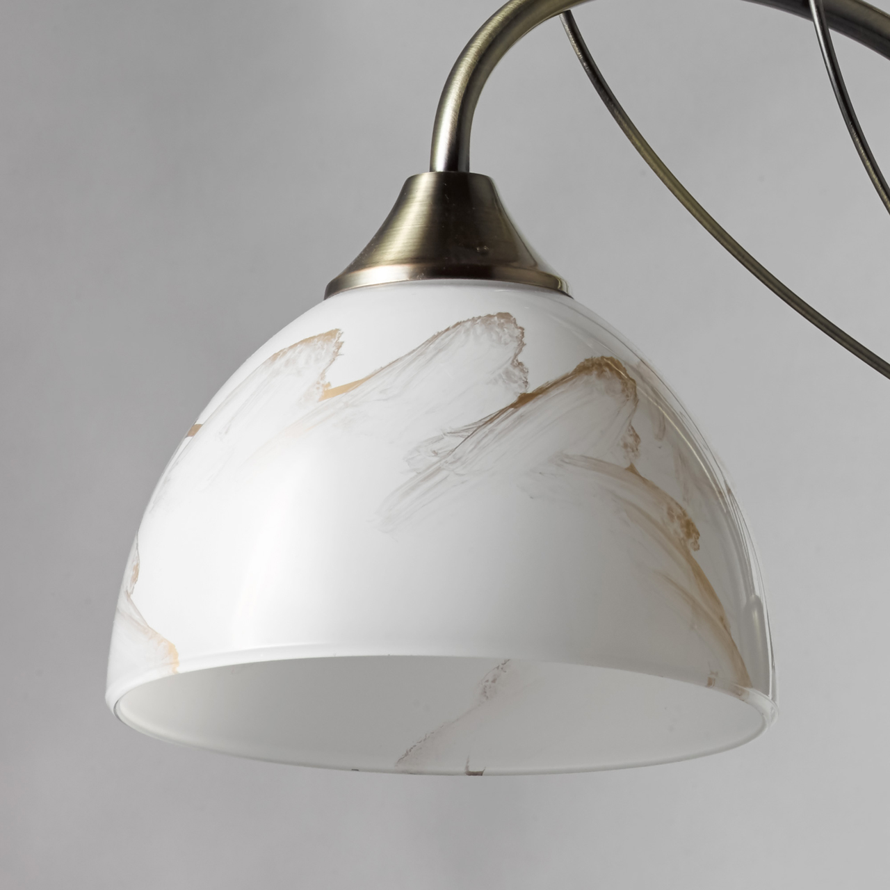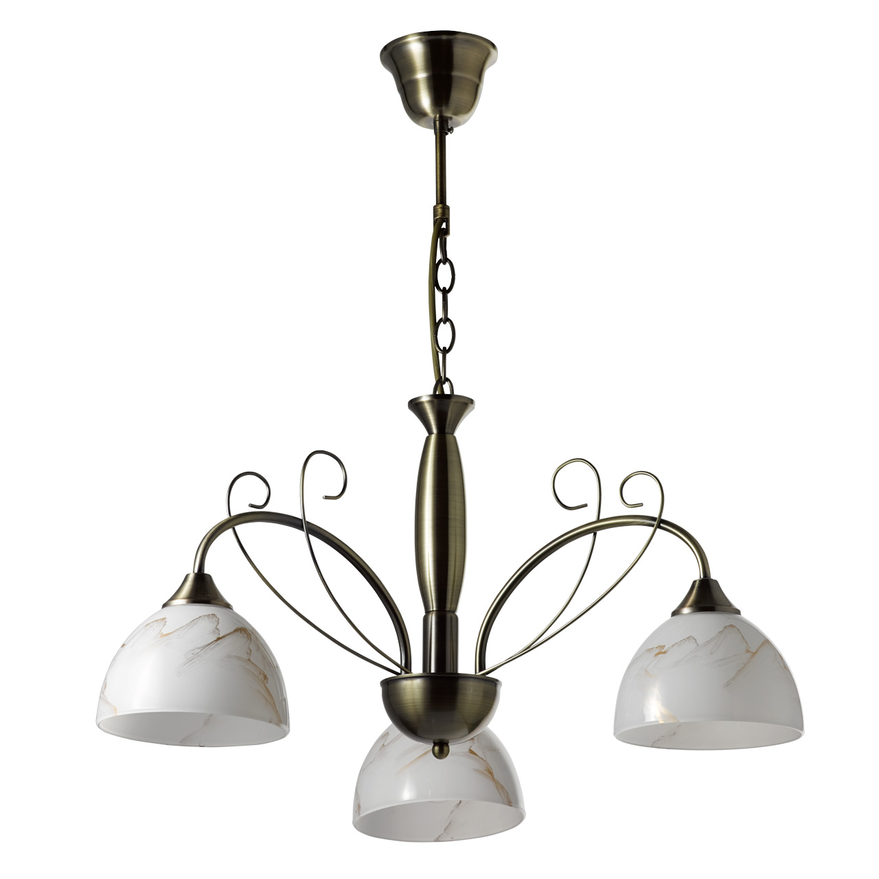 Классический дизайн в современной интерпретации.Плафоны с рисунком под мрамор обеспечивают отличное распределение света.Популярный цвет античной бронзы идеален для традиционных интерьеров.Металлический декор добавляет легкости модели.Возможность регулировать высоту светильника