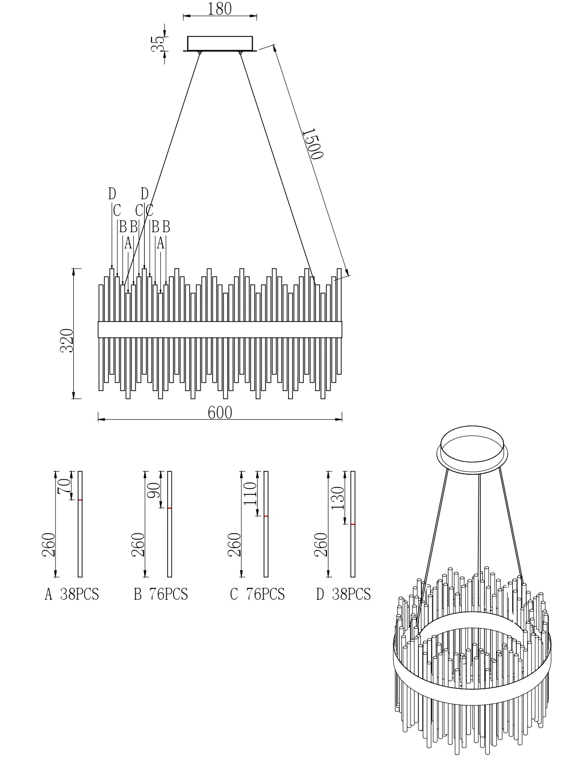 - Цвет плафонов: Прозрачный