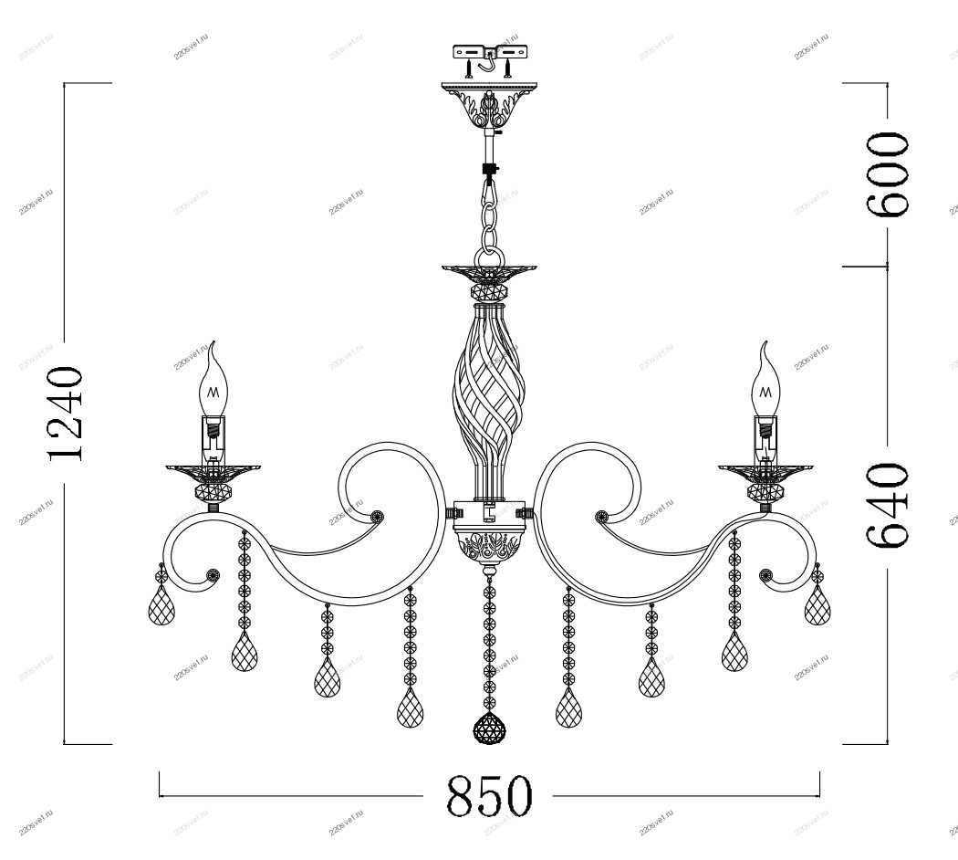 - Форма плафона: Без плафона, Свеча