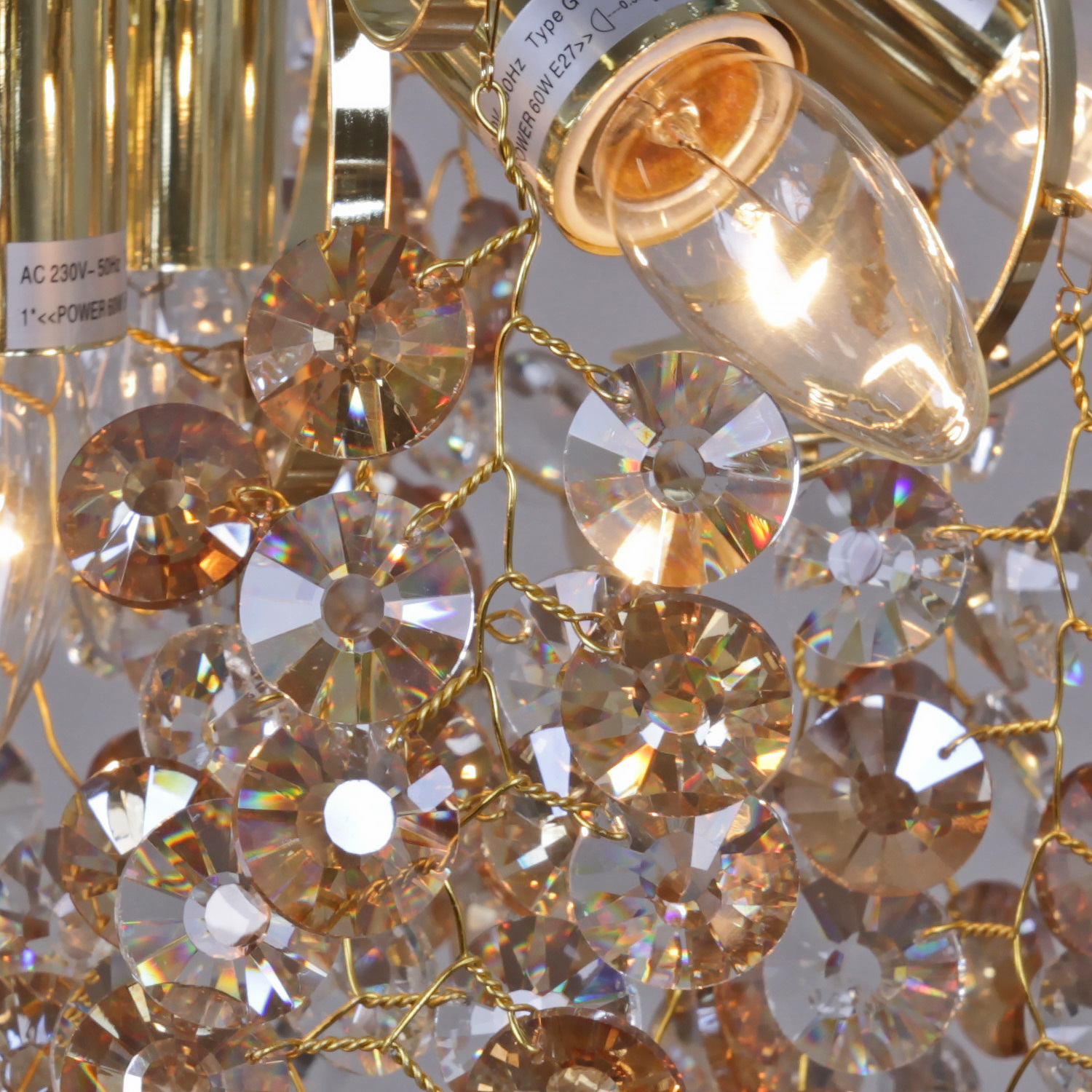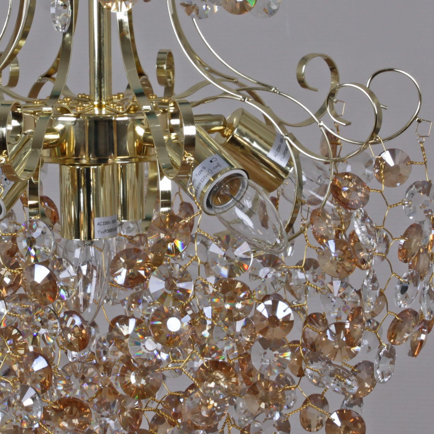 - Цвет плафонов: Золотой, Прозрачный