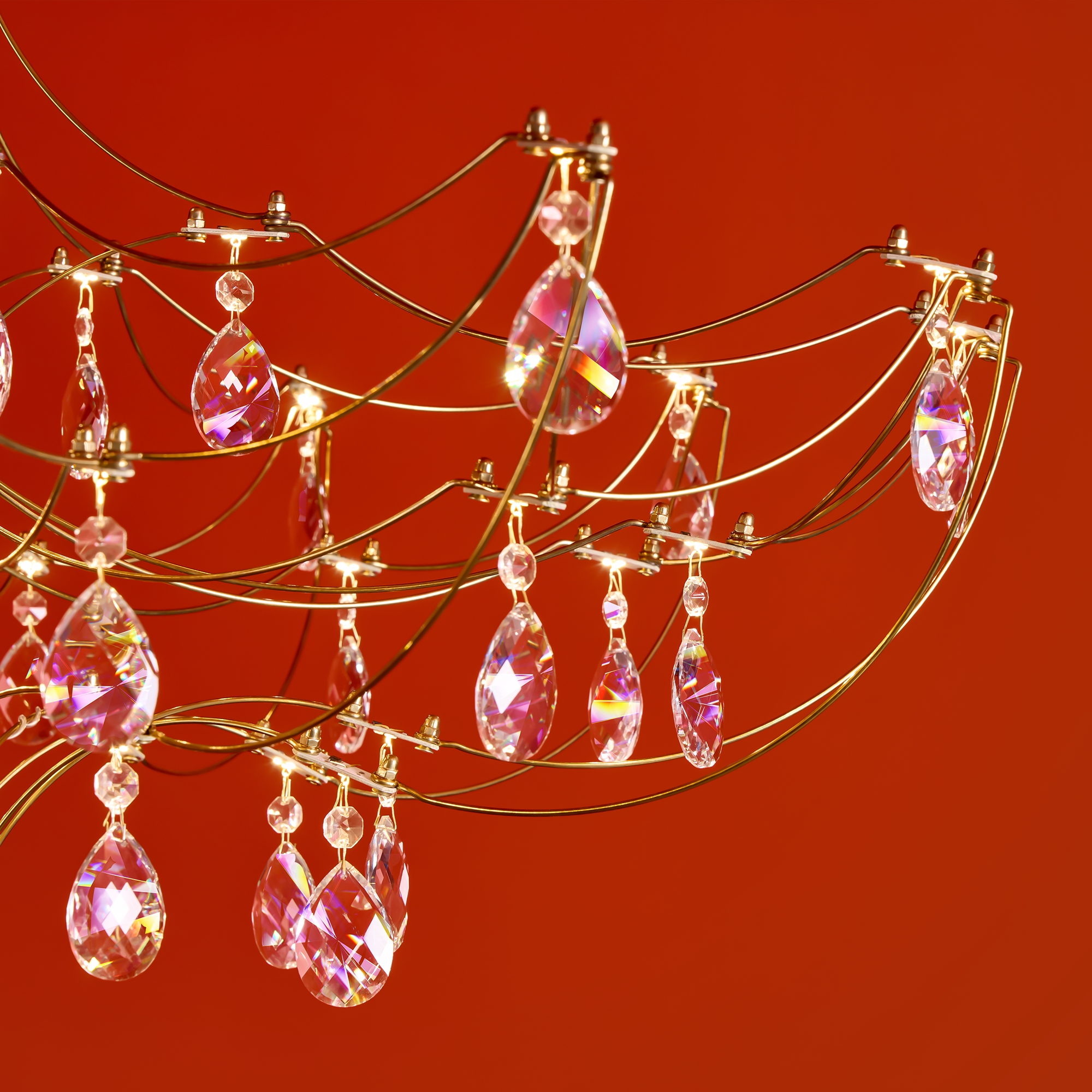 Арматура - хромированная нержавеющая сталь. В соединениях арматуры Led источник света и декоративные элементы из хрусталя в виде капелек. Цветовая температура 3000К.