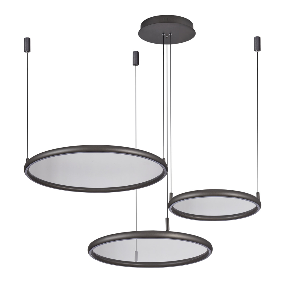 Представляем Вашему вниманию удивительный, мультифункциональный подвесной светильник с пультом дистанционного управления LSP-7424. Каждый из трех составляющих его дисков имеет два различных по типу светодиодных модуля. Первый дает свечение по окружности, второй превращает в источник света внутреннюю плоскость диска. За счет примененных технологий внутренняя поверхность диска имеет близкую к абсолютной прозрачность, что позволяет в зависимости от комбинации включенных световых модулей радикально менять эстетическое восприятие светильника. Световая температура также позволяет плавную регулировку в широком диапазоне.