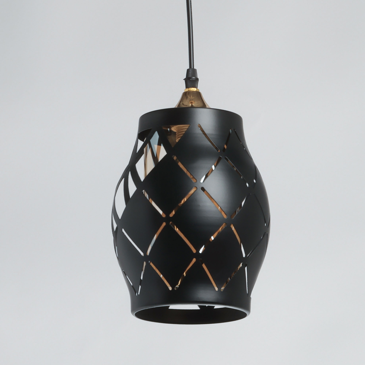 Одиночный подвес создает комфортное зональное освещение. Сочетание на контрасте матового черного цвета и глянцевого цвета золота эффектно выделяет подвес на потолке.Черный цвет металлического плафона актуален в стиле лофт и в брутальном интерьере.Стеклянный плафон цвета шампань мягко преломляет свет.Заменяемый источник света удобен в эксплуатации.Возможность устанавливать комфортную высоту.