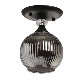 Потолочная чаша и держатель плафона выполнены из металла и гальванизированы в цвет золота. Металлический плафон окрашен в черный цвет. Внутренний стеклянный плафон гальванизирован в цвет шампань.