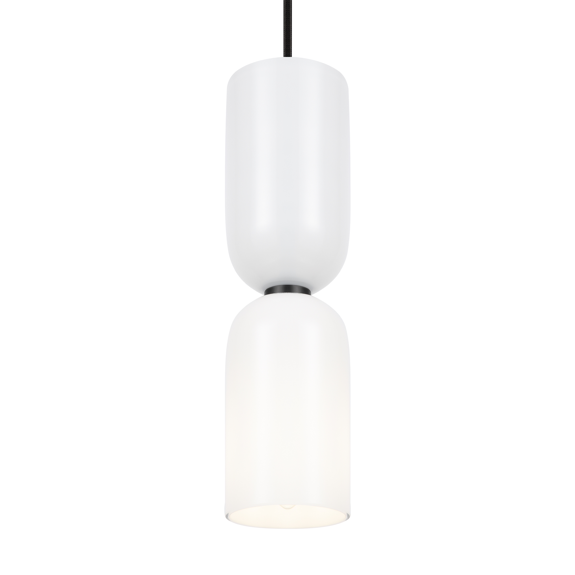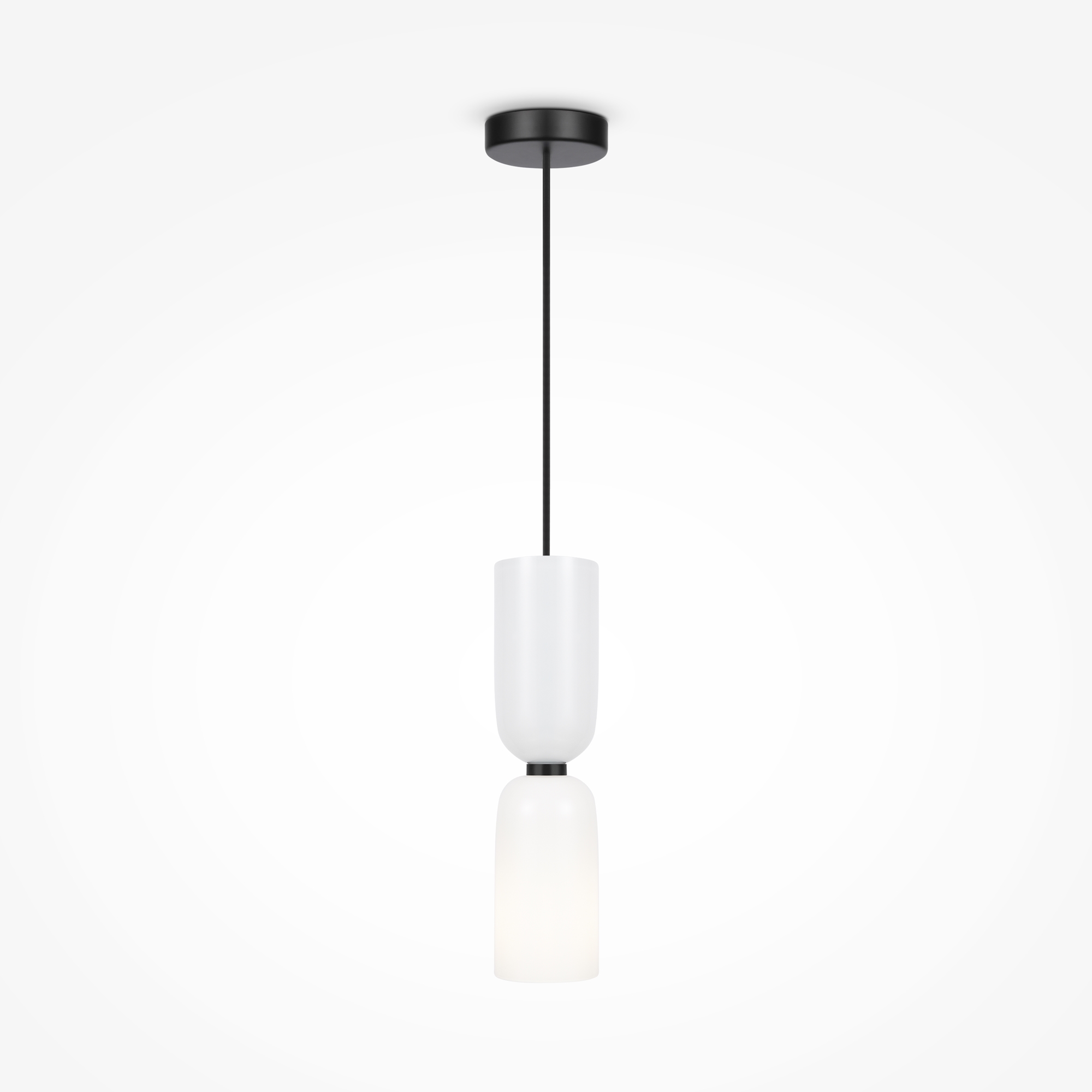 Металлическая арматура, цвет - черный. Светильники стилизованы под форму песочных часов с обтекаемой формой. Керамические элементы с глянцеовй глазурью. Подвесные светильники с плафонами из белой керамики с прозрачным, черно-белым, золото-белым и белым стеклом. Регулируемая высота подвесных светильников.