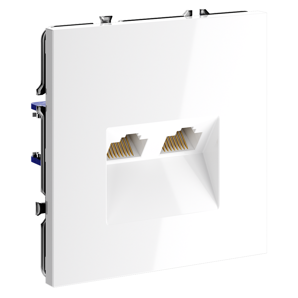 Купить "Розетка компьютерная встраиваемая двойная RJ45+RJ45 кат.6 Voltum S70 VLS060201 (белый глянцевый)"
