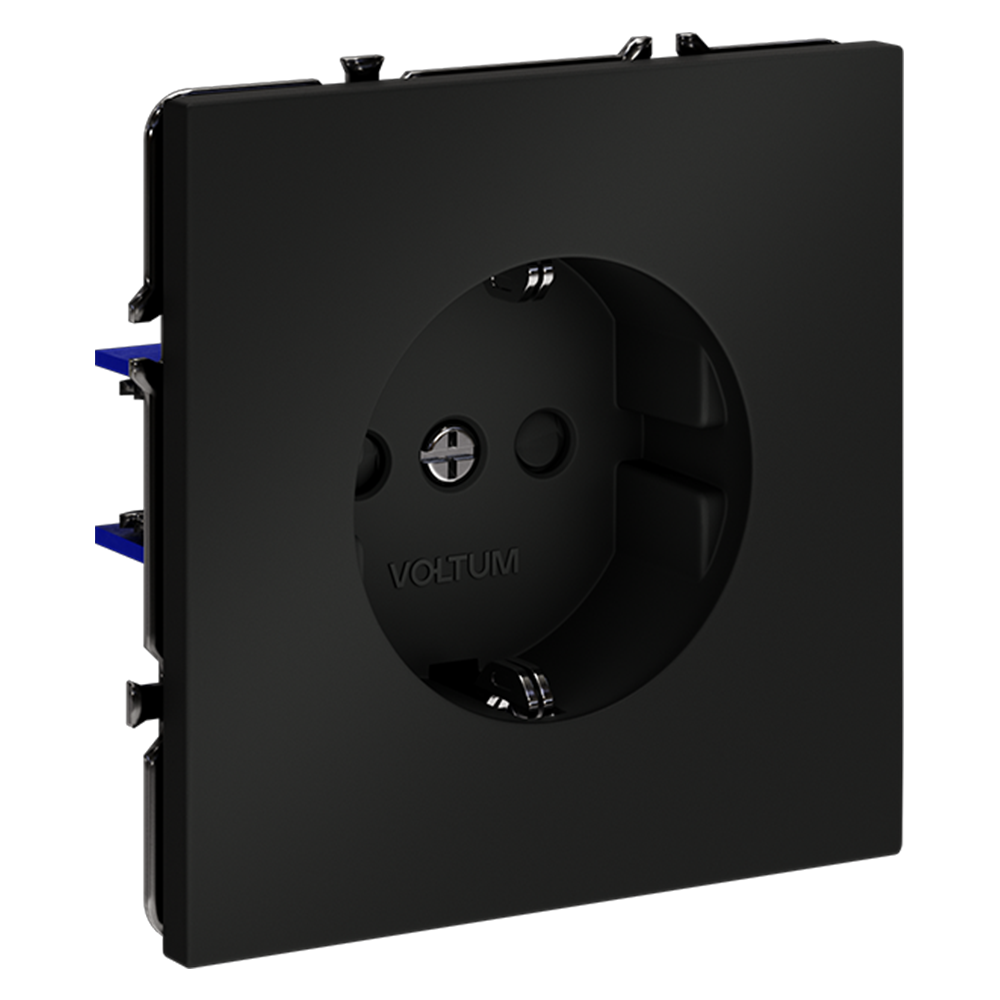 Купить "Розетка встраиваемая с заземлением и защитными шторками, 16А Voltum S70 VLS040208 (черный матовый)"