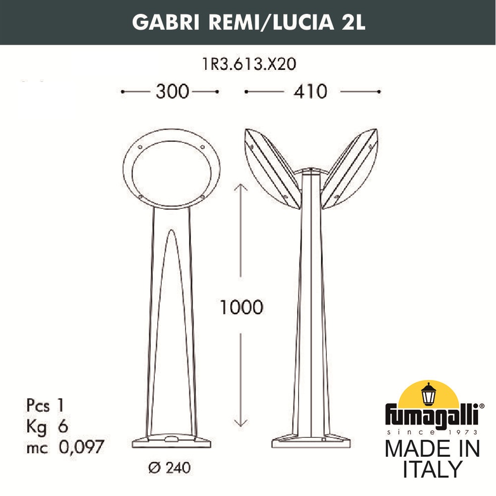 Садовый светильник-столбик наклонный Fumagalli Gabri remi/Lucia 2l 1R3. 613. X20. WYE27 в Тамбове