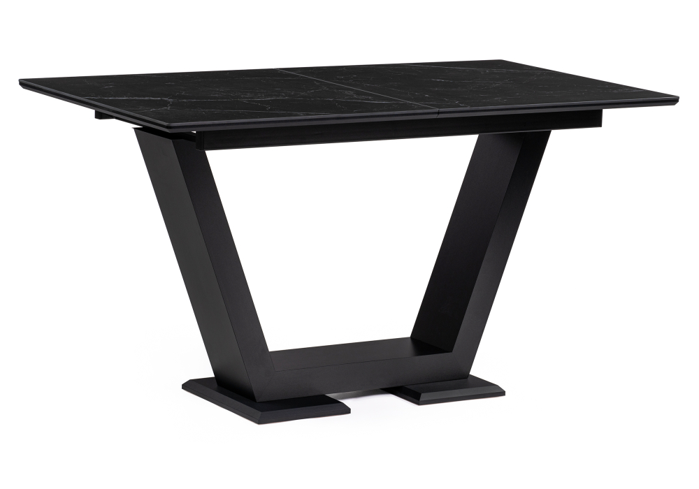 Материал каркаса - Металл; Материал ножек - Металл; Материал столешницы - Керамика / МДФ; Цвет каркаса - Черный; Цвет ножек - Черный; Цвет столешницы - Черный; Цвет подстолья - Черный; Ширина - 80; Высота - 76; Длина стола в разложенном виде - 180; Длина - 140;