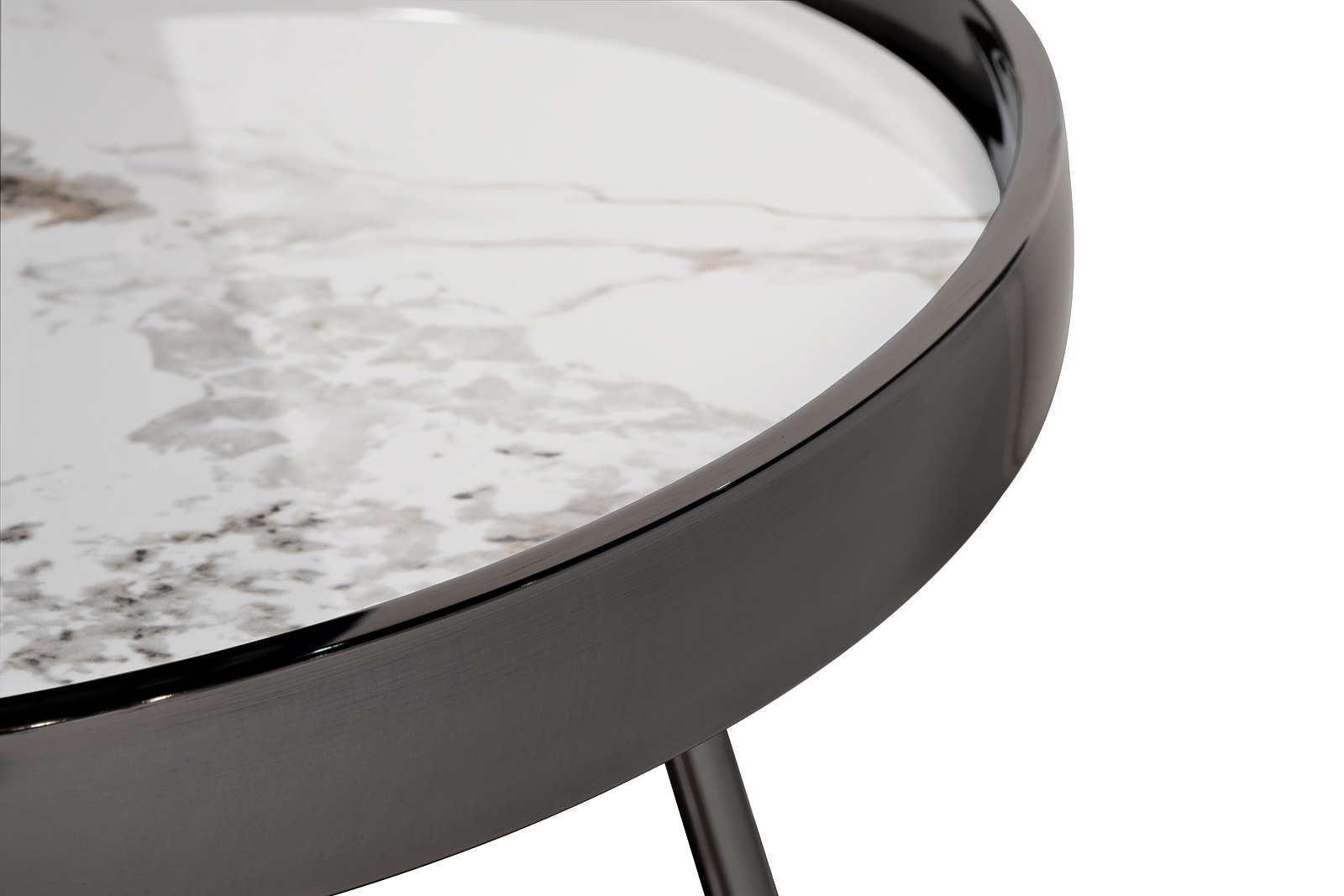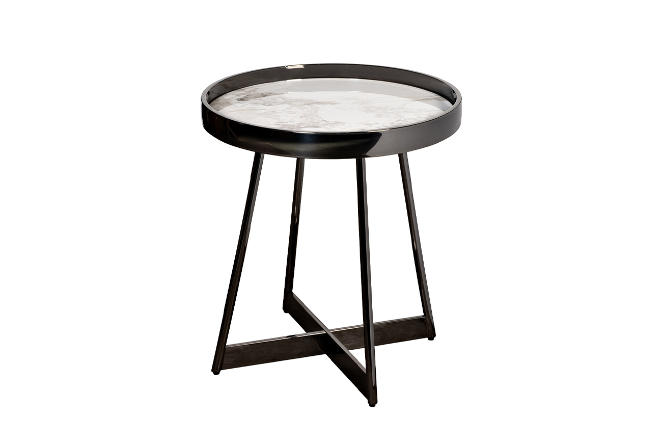 Представляем журнальный столик, в котором белый керамогранит встречается с черным хромом, создавая сдержанное взаимодействие геометричности и природной элегантности. Его круглая столешница из из глянцевого керамогранита с текстурой, отсылающей к благородному мрамору, формирует ощущение легкости и чистоты. Высокий бортик и тонкое основание из нержавеющнй стали цвета черного хрома подчеркивают минималистичный характер и придают предмету графическую выразительность. Этот дизайнерский столик идеально впишется в актуальные интерьеры, где ценятся контрастные сочетания и функциональная эстетика. Он станет стильным акцентом в гостиной, предлагая элегантную поверхность для напитков, книг или декоративных предметов. Это не просто мебель, а манифест эстетического подхода к дизайну, который смело играет с материалами и формами, создавая пространство, наполненное утонченностью и современным шиком. Толщина столешницы - 10мм.