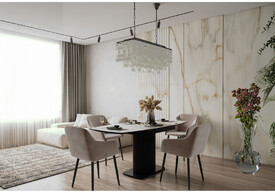 Керамический стол раскладной Woodville Блэкберн 160(220)х89 белый gilt white / черный 612182