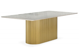 Стол деревянный 200х90 Woodville Хьюго О белая шагрень пленка / золотые ноги 620424