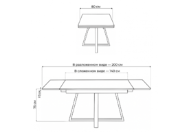 Керамический стол раскладной Woodville Памелла 140(200)х80 carmen light grey / черный 625824