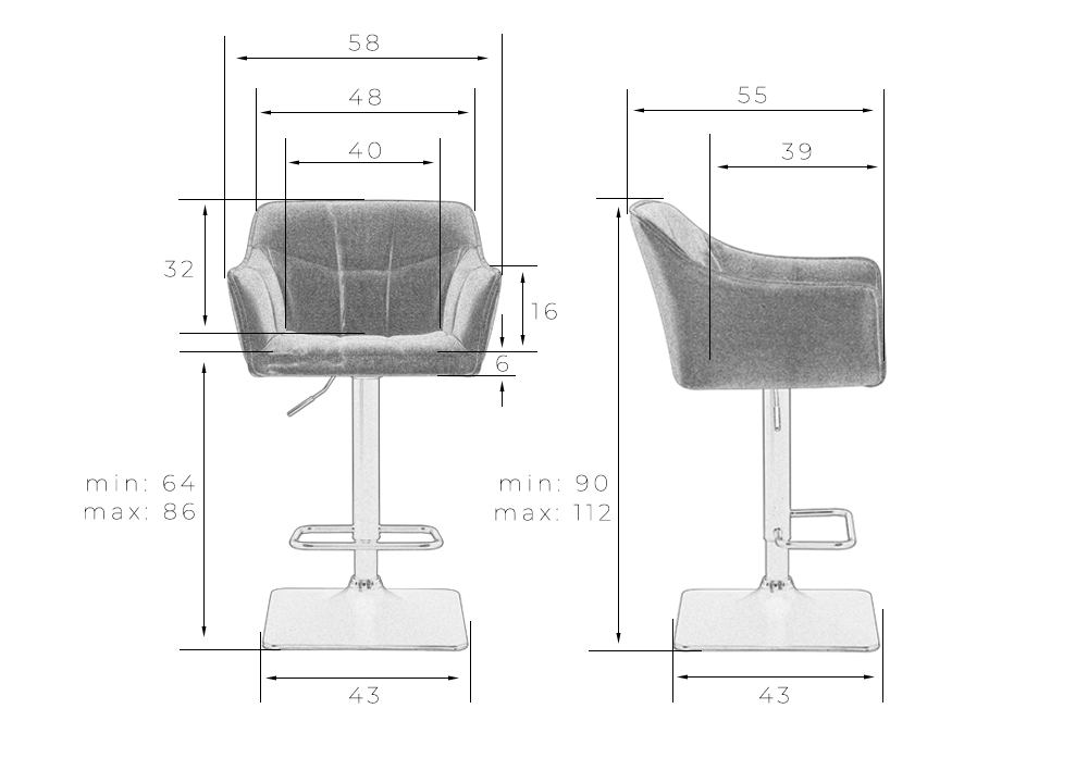 - Высота сиденья: 64 мм