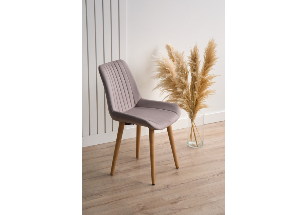 Материал каркаса - дерево; Материал сиденья - велюр; Материал обивки - велюр; Цвет ножек - натуральный; Ширина - 50; Глубина - 56; Высота - 82; Ширина сиденья - 47; Глубина сиденья - 42; Высота сиденья - 48;