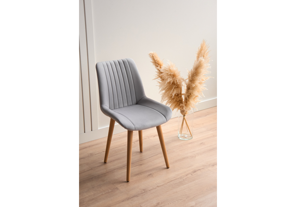 Материал каркаса - дерево; Материал сиденья - велюр; Материал обивки - велюр; Цвет ножек - натуральный; Ширина - 50; Глубина - 56; Высота - 82; Ширина сиденья - 47; Глубина сиденья - 42; Высота сиденья - 48;