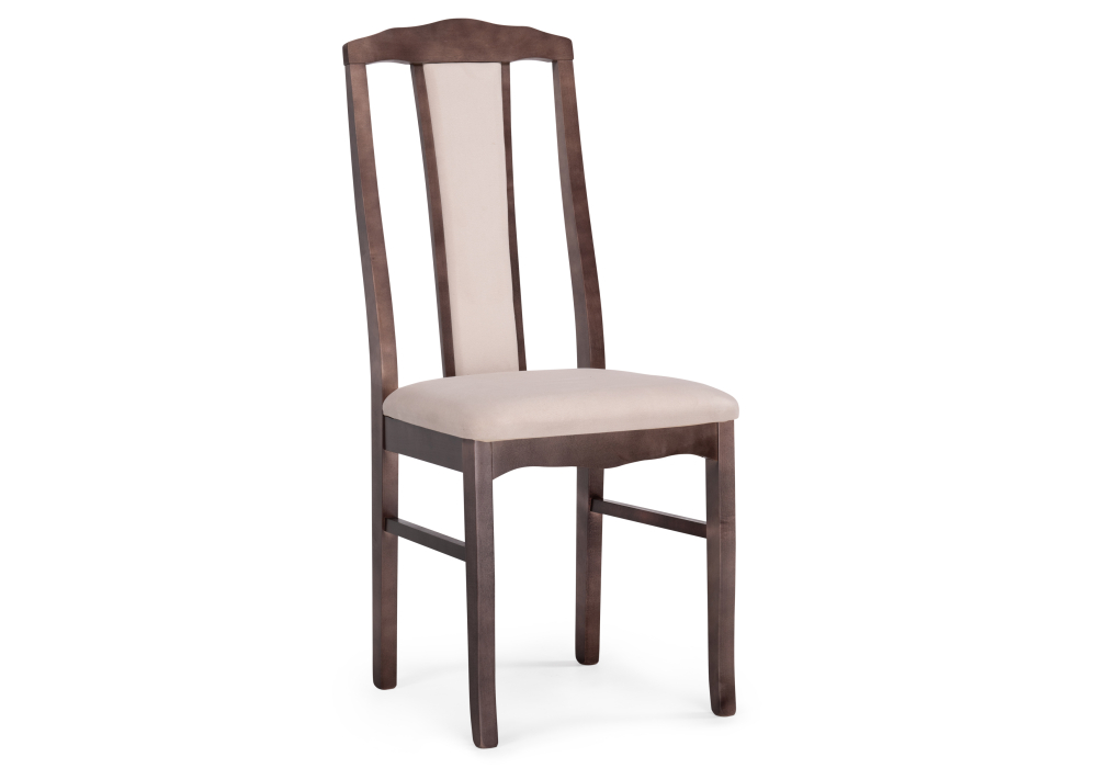 Материал каркаса - Массив березы; Материал сиденья - Велюр; Материал ножек - Массив березы; Материал обивки - Велюр; Цвет каркаса - Орех; Цвет сиденья - Бежевый; Цвет ножек - Орех; Цвет обивки - Бежевый; Ширина - 42; Глубина - 50; Высота - 98; Ширина сиденья - 40; Глубина сиденья - 41; Высота сиденья - 47;