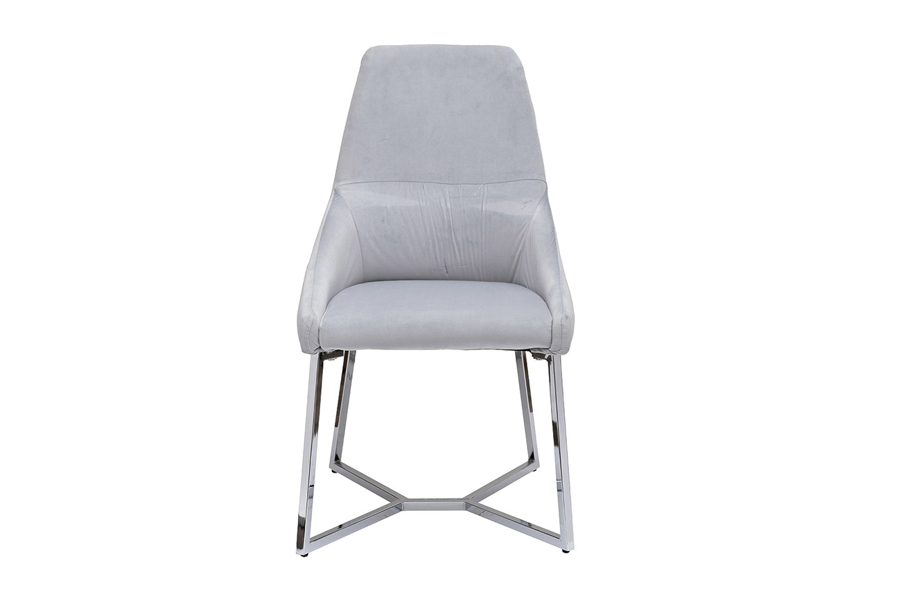 Дизайнерский стул на металлическом каркасе в современном европейском стиле не только украсит собой обеденную зону, но и будет уместно смотреться в гостиной, спальне, кабинете, холле. Это универсальный предмет интерьера, который отличается оригинальным дизайном и безупречным качеством исполнения. Серый велюровый стул устойчив благодаря серебристой стальной опоре, которая заменяет традиционные ножки. А за счет наполнителя из пенополиуретана на спинке и сидении обеденный стул мягкий и невероятно комфортный. Он легко вписывается в стилистику ар-деко, неоклассика, лофт, модерн, минимализм, фьюжн. Оригинальный стул, выполненный в современном европейском стиле, сочетает в себе красоту и удобство. Обивка из высококачественного серого велюра и специально сконструированное сиденье, поддерживающее спину, обеспечивают комфорт, а прочная серебристая стальная опора, заменяющая традиционные ножки, гарантирует устойчивость.
