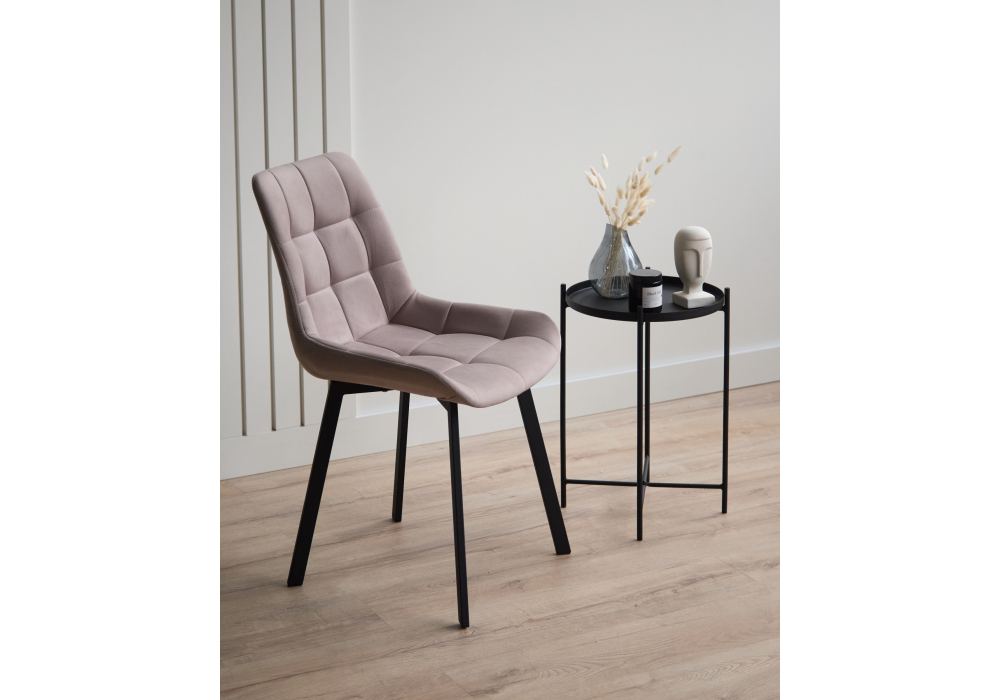 Материал каркаса - металл; Материал сиденья - велюр; Материал обивки - велюр; Цвет ножек - черный; Ширина - 50; Глубина - 60; Высота - 80; Ширина сиденья - 44; Глубина сиденья - 41; Высота сиденья - 48;