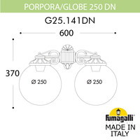 Светильники уличные настенные FUMAGALLI серии GLOBE 250, модель PORPORA/GLOBE 250DN. Консольный уличный светильник из 2-х фонарей GLOBE 250 установленных вниз, на кронштейнах BISSO малого размера. Для монтажа на стену. Используются для фасадного и архитектурного освещения в стиле "классика". Место установки уличных светильников - фасады, колонны и другие вертикальные поверхности исторических зданий, котеджей, загородных домов, церквей, а так же, другие места где требуется и возможна установка фонарей. Изготовлены в Италии, по уникальным технологиям "FUMAGALLI" из современного композитного полимера RESIN. Этот материал в 5 раз прочнее металла, не ржавеет, не окисляется, не выгорает на солнце, его не нужно красить. Все светильники пыле-влаго защищены по стандарту IP55 (Пыленепроницаемые, защита от водяных струй с любого направления). Рассеиватель выполнен из антивандального, не мутнеющего и не горючего PMMA (ПолиМетилМетаАкрилат). Срок службы светильника - не менее 20 лет. Температура использования от -60 до +90. В серии GLOBE 250 есть фонари в настенном (BISSO/GLOBE 250, OFIR/GLOBE 250, MIRRA/GLOBE 250, PORPORA/GLOBE 250) подвесном (SICHEM/GLOBE 250) и наземном исполнении (IAFAET.R/GLOBE 250, ALOE.R/GLOBE 250, ARTU/GLOBE 250, GIGI/GLOBE 250, RICU/GLOBE 250, RICU/ISSO/GLOBE 250 1L, RICU/ISSO/GLOBE 250 2L, RICU/ISSO/GLOBE 250 3L) со столбами разной высоты, с разным количеством и конфигурацией голов. Консоли настенных фонарей и кронштейны светильников на столбах освщения могут устанавливаться вверх/вниз. Столбы выше 150 см имеют в основе мощную стальную трубу с двойной оцинковкой. При заказе требуется выбрать цвет корпуса, цвет плафона и тип патрона. По стилю и дизайну серия уличных светильников GLOBE 250 похожа на светильники большого размера GLOBE 400 и на светильники среднего размера GLOBE 300.