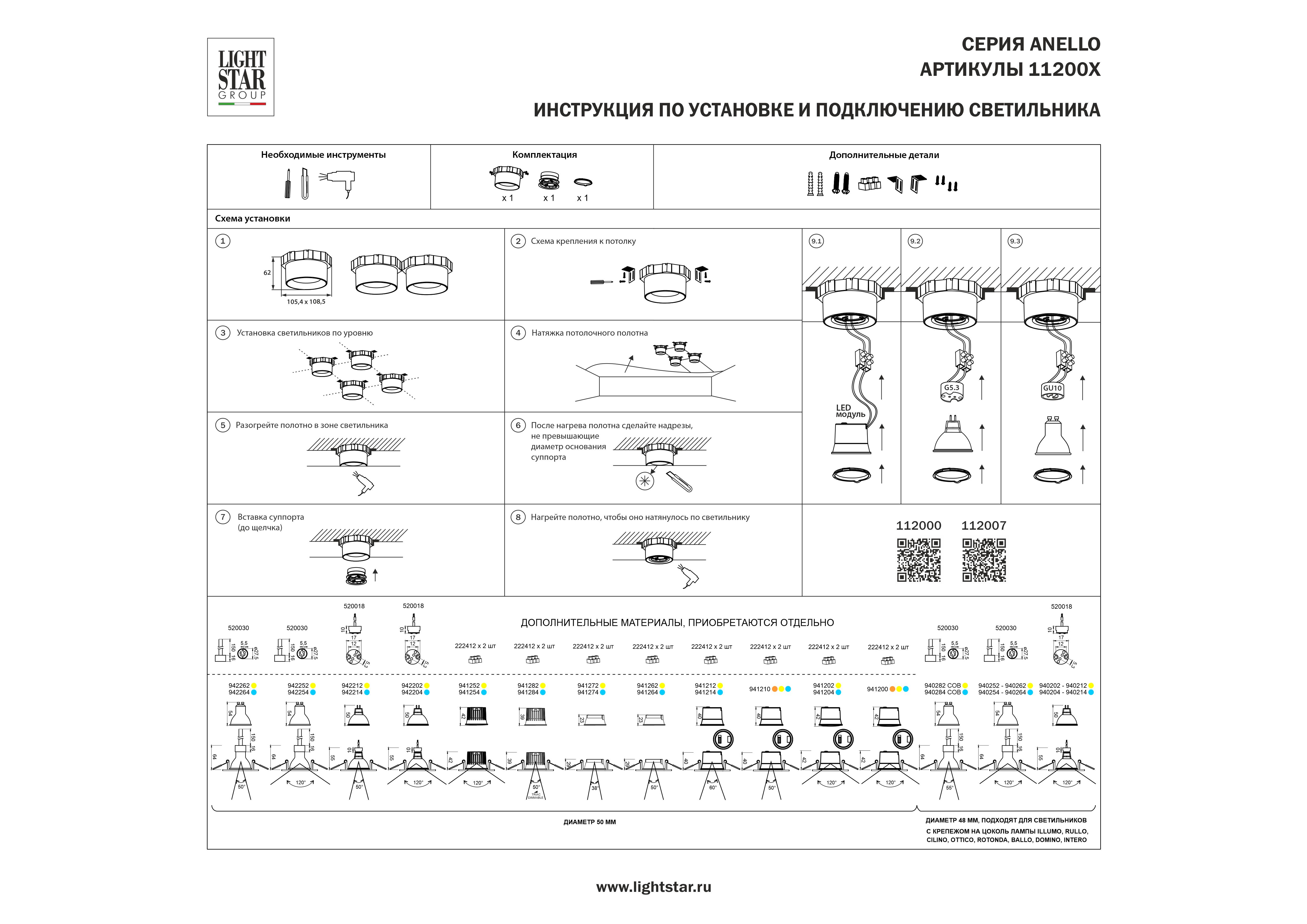 Светильник в натяжной потолок Anello Lightstar 112007 в Тамбове