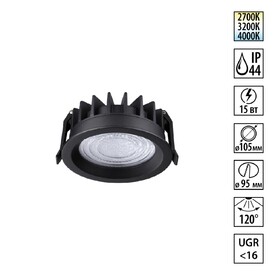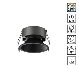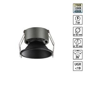 Встраиваемый светильник светодиодный с переключателем цветовой температуры Novotech RAYNE 359841 черный