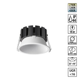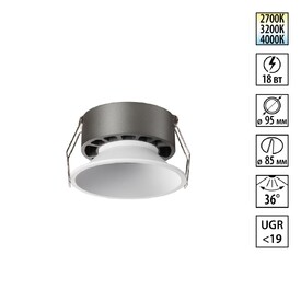 Встраиваемый светильник светодиодный с переключателем цветовой температуры и угла рассеивания Novotech RAYNE 359840 белый