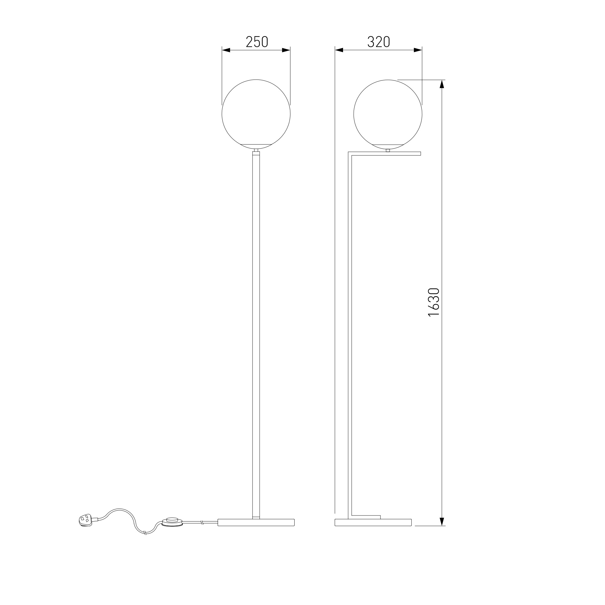 • Высота: 1630 мм (163 см)