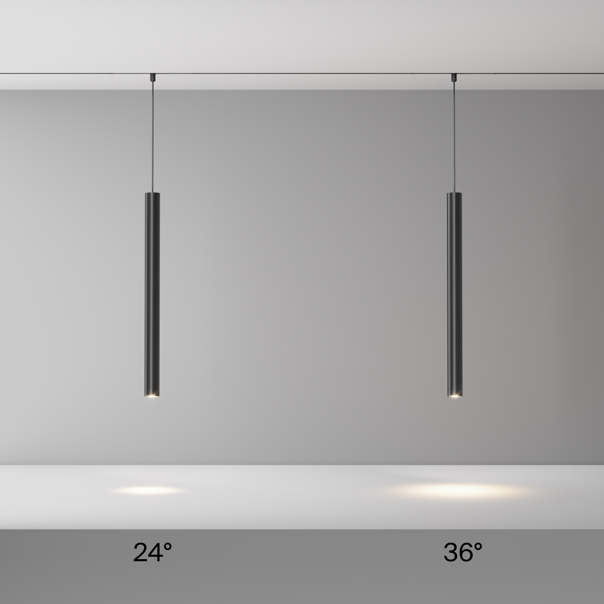 Трековый светильник спотового типа. Алюминиевый корпус, цвет черный. Мощность: 6W, 12W, 18W (накладные) и 7W (подвесной). Сменные линзы: 15°, 24°, 36°, 50°. Поворот 350° и наклон 90°. Цветовая температура: 3000K / 4000K. Версии: On/Off (переключатель групп I/II), DALI, Zigbee (диммирование и CCT 2700K-6000K). Подвесной: высота корпуса 400 мм, общая высота 1180 мм. Гарантия 5 лет.
