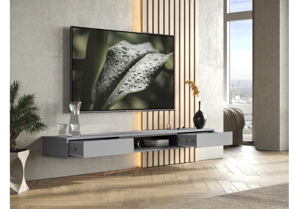 Купить "ТВ-тумба Woodville Делора 1,8м шиншилла серая / черный 674721"