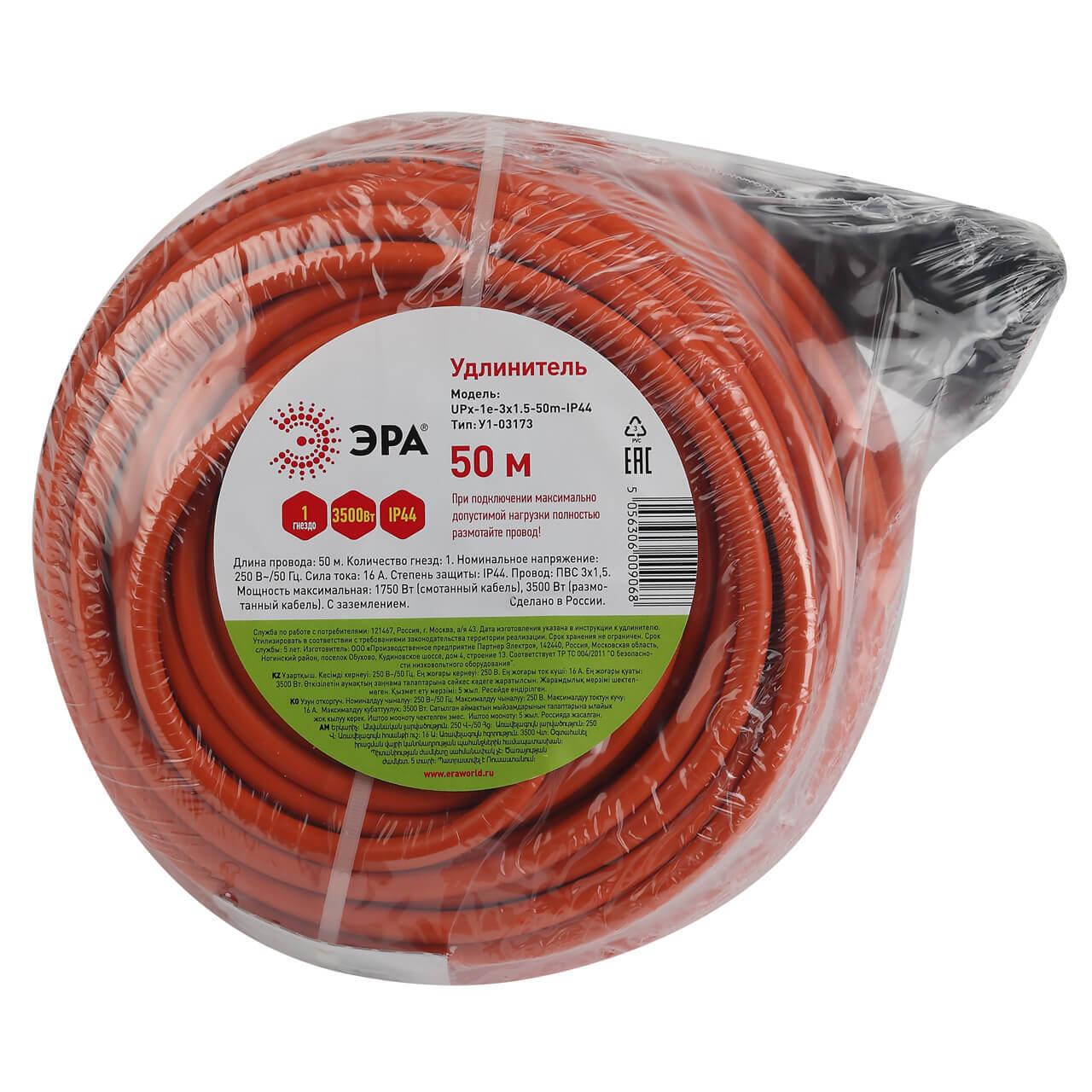 Купить "Удлинитель силовой ЭРА UPx-1e-3x1.5-50m-IP44 Б0046819"
