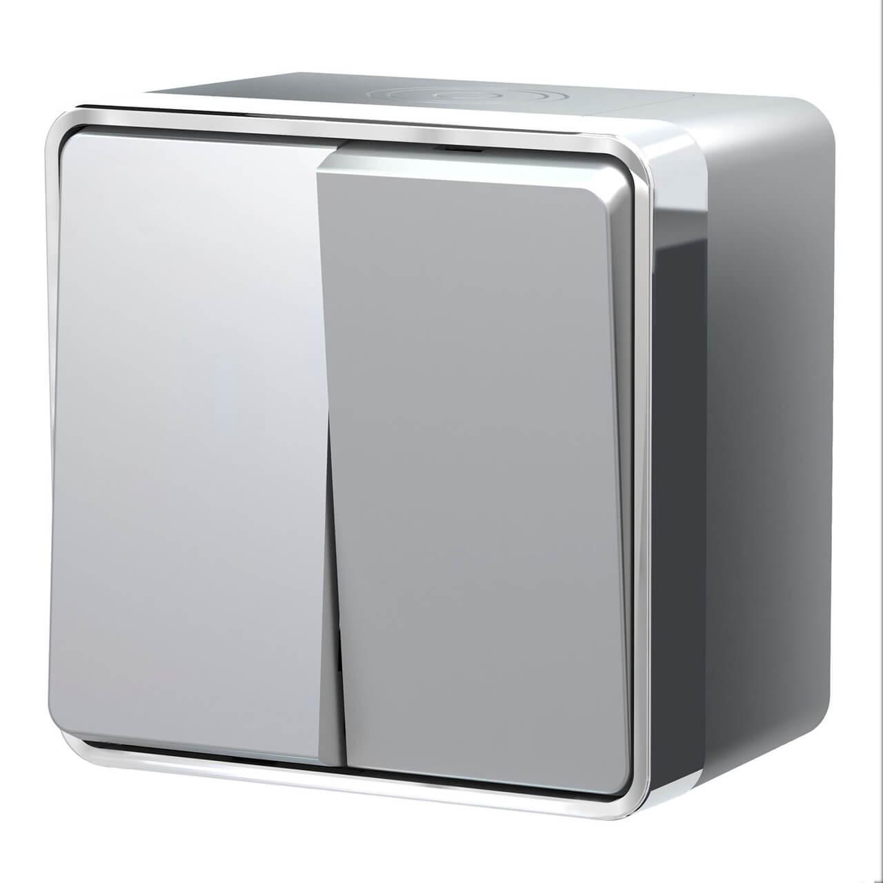 Купить "Выключатель двухклавишный влагозащищенный Werkel Gallant серебряный W5020206 4690389167133"